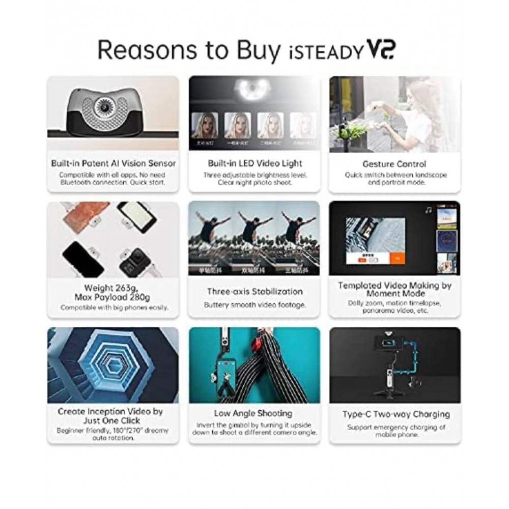 Características: 1 . Sensor de visão AI integrado , pode realizar o acompanhamento automático sem O APLICATIVO 2 . Aplicação com um clique de modelos de vídeo Moment , lançamento de filme rápido 3 . Chip de H2 AI , Poder de computação de 0,6 T , alto desempenho , alta integração , baixa latência 4 . Design de placa laminada dupla para otimizar a utilização do espaço 5 . 3 níveis de luz de preenchimento de embelezamento ajustável 6 . Alça de grão de couro compatível com a pele atualizada , design antiderrapante , mais confortável de segurar 7 . O estabilizador invertido muda para disparo em ângulo baixo , desbloqueando uma perspectiva única 8 . Apoie o acompanhamento completo da plataforma , não há necessidade de adaptação a software de terceiros 9 . Anti-shake físico de três eixos para evitar que a qualidade da imagem seja danificada e cortada parâmetro: 1 . Celulares compatíveis: peso menor ou igual a 280 gramas , espessura menor ou igual a 11 mm , largura 55-90 mm 2 . Faixa de ângulo controlável: rumo 320 graus , passo -30 graus -30 graus 3 . Faixa de ângulo mecânico: rumo 320 graus , rolo de 320 graus , passo 320 graus 4 . Bateria: 18650 bateria de lítio , 2800 mAh 5 . Duração da bateria: 2-9 horas.