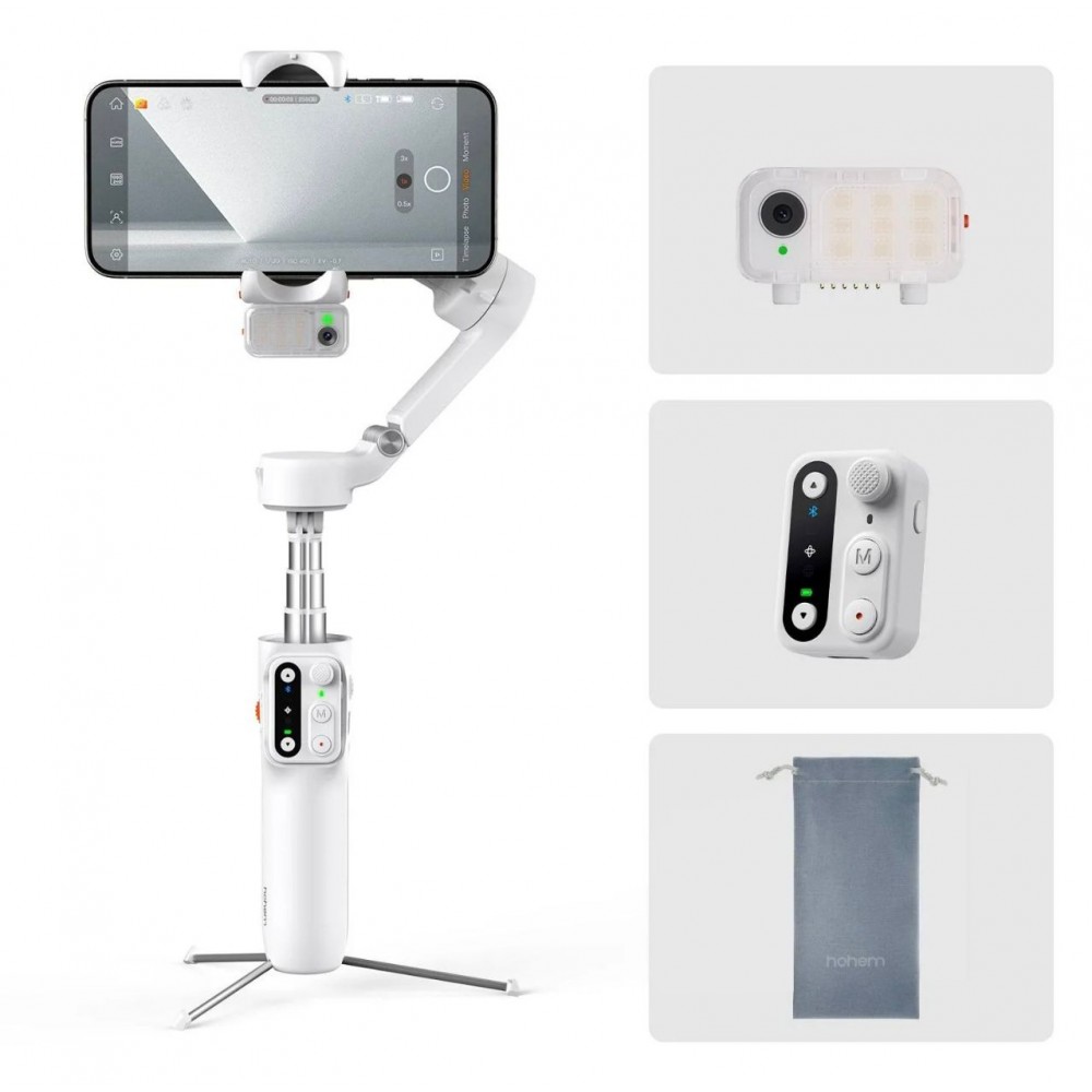 Estabilizador gimbal hohem iSteady V3 para smartphone com rastreador magnético AI, haste e tripé extensíveis integrados, controle remoto removível