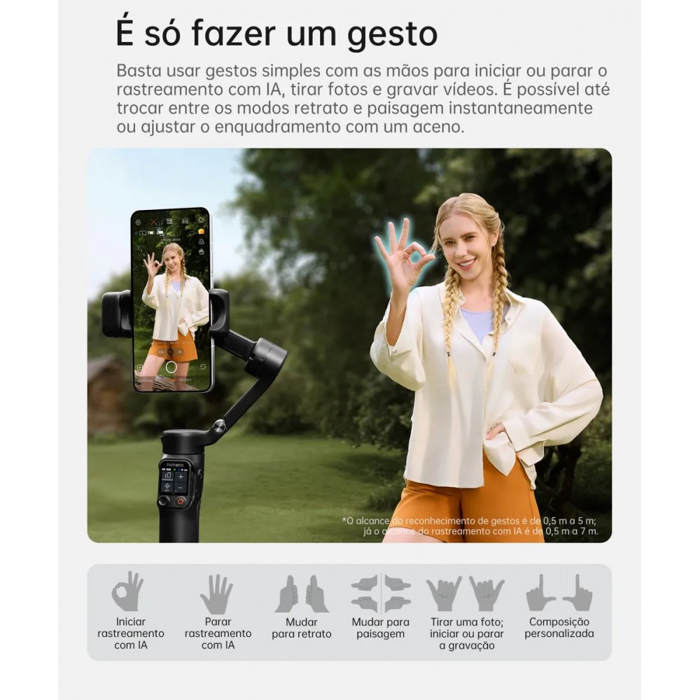 O V3 Ultra foi totalmente atualizado com AI Touch Tracking, permitindo o rastreamento nativo de qualquer alvo, desde pessoas a objetos, com visualização remota em tempo real e composição visual da cena, acabando com as fotos cegas. Com uma haste extensível integrada, leve e dobrável, desempenho Ultra ao máximo, solte as mãos e capture seus momentos incríveis