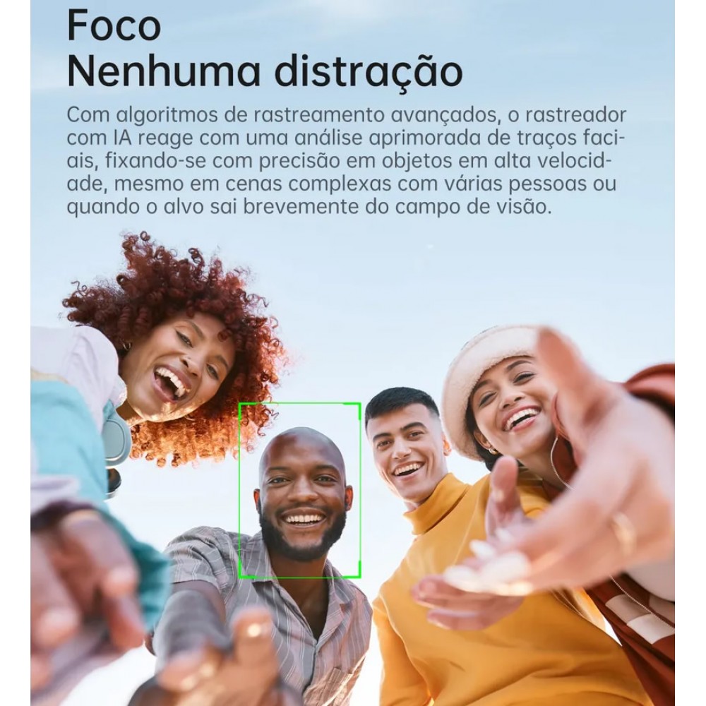 A resolução de pixels da câmera AI foi aumentada de 1 milhão para 2 milhões e, com base no algoritmo de rede neural CNN, possui uma capacidade mais forte de extração de características e computação em tempo real. Seja em filmagens instantâneas ou com várias pessoas, ela é capaz de identificar com precisão o protagonista e mantê-lo em foco, mesmo que ele seja obstruído por outras pessoas ou objetos, e pode recuperá-lo rapidamente.