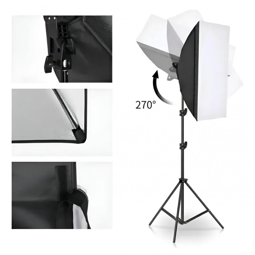 •Softboxes 50x70cm: Os dois softboxes inclusos suavizam a luz, criando uma iluminação mais uniforme e agradável, ideal para evitar sombras duras em fotos e vídeos.
