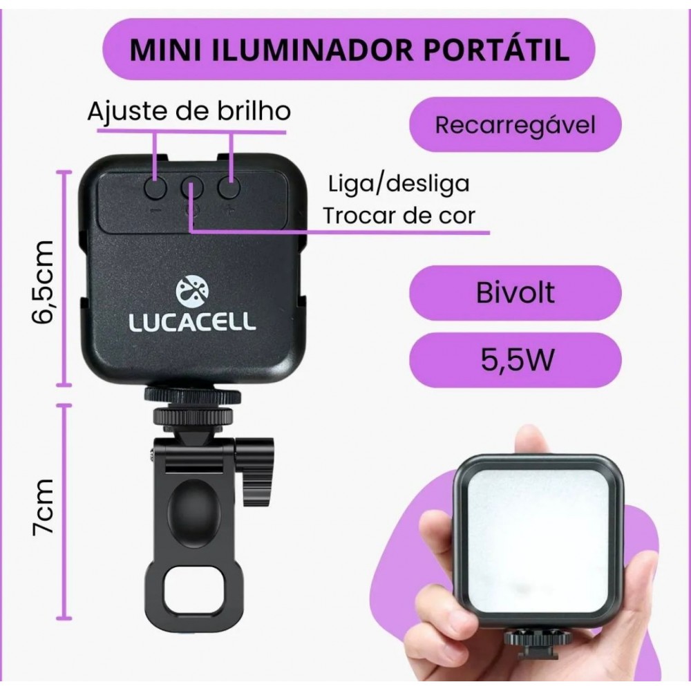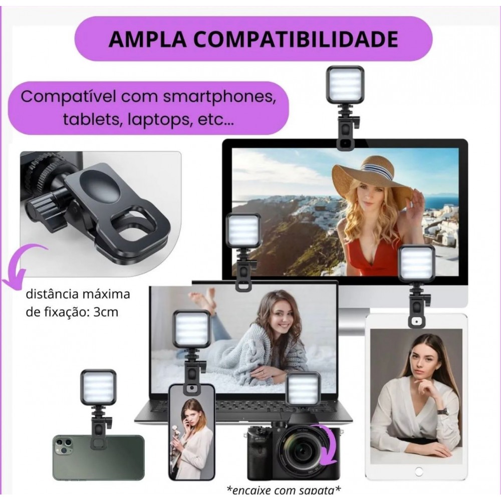A Mini LED RGB é ideal para criadores de conteúdo, fotógrafos, videomakers, maquiadores e para quem busca qualidade de imagem com praticidade.