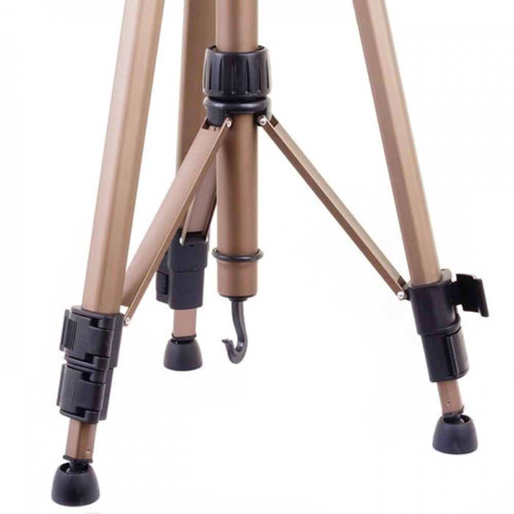 O Tripé WT-3750, é feito em alumínio anodizado e possui três seções, elevador central que garante a estabilidade do produto, um suporte de mão para dar firmeza e também para manusear o tripé de um local a outro, um gancho para suportar bolsa ou acessórios, um engate e bolha de nível embutida.