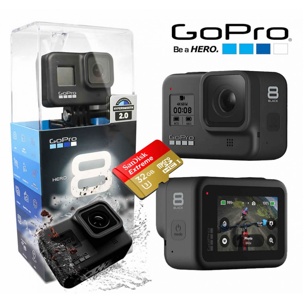 Câmera Esportiva GoPro Hero8 BLACK 4K 60FPS HyperSmooth 2.0 + 32GB EXTREME