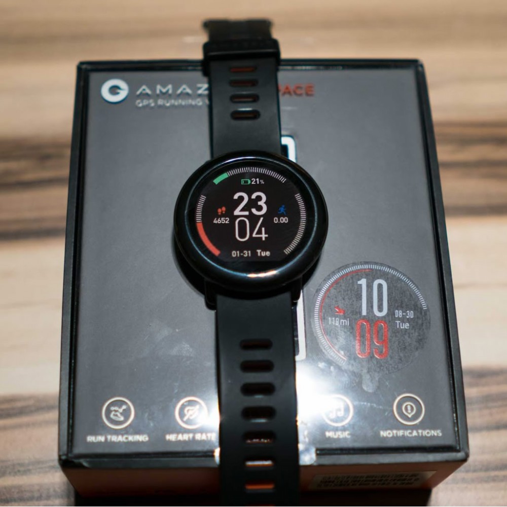 Primeiro smartwatch da linha Amazfit com uma tela capacitiva sensível ao toque, design esportivo e muitas funcionalidades como sensor de batimentos cardíacos, GPS embutido, notificações push e pedômetro.
