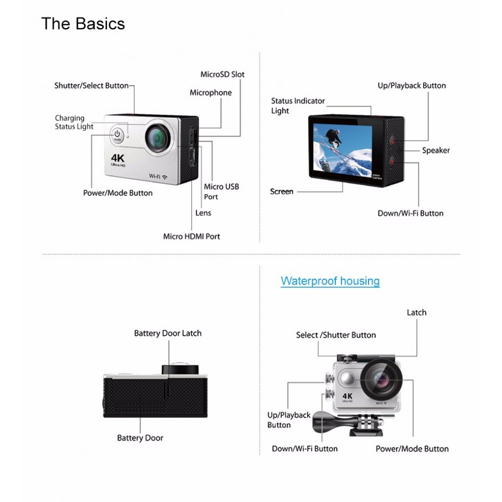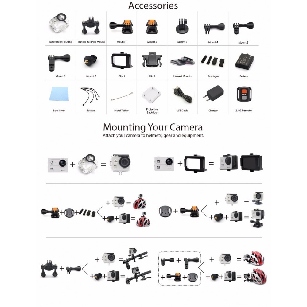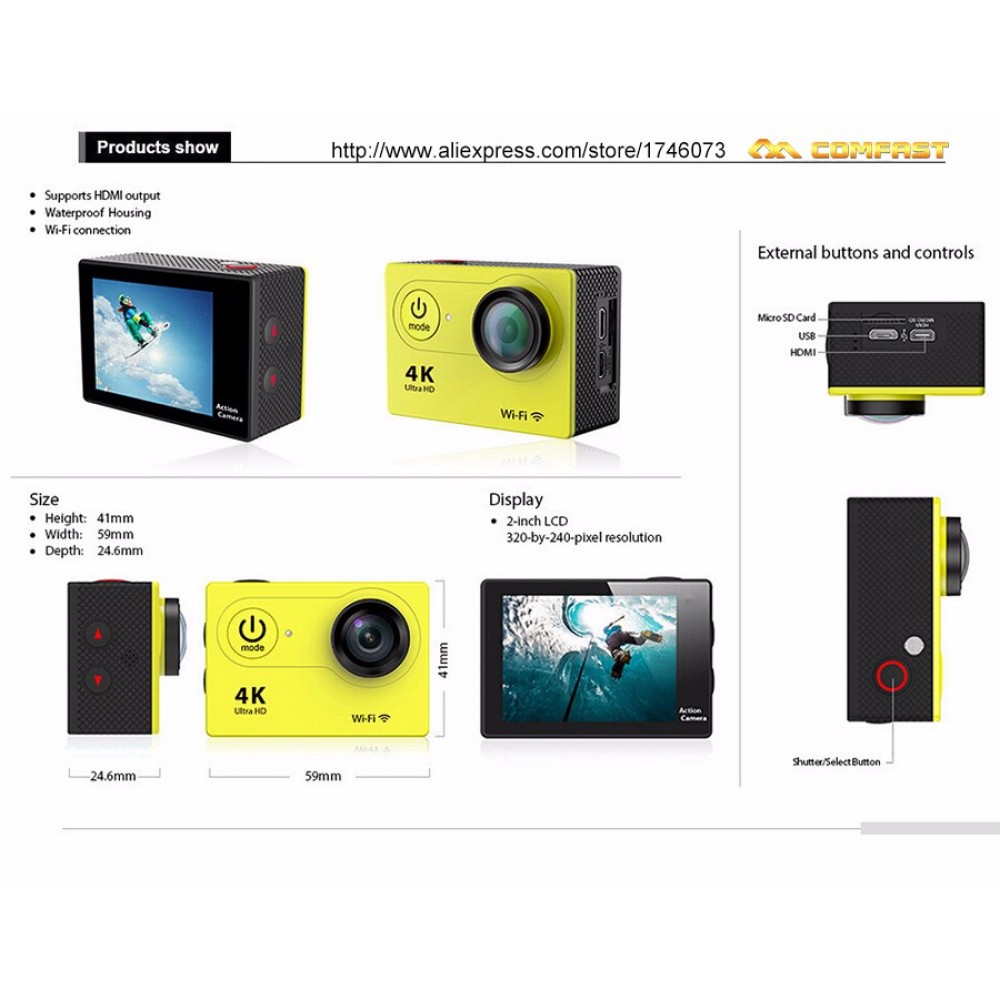 4K/24fps-2K/30fps-1080p-60fps - Formato de vídeo: H.264 - Angulo de visao: 1..