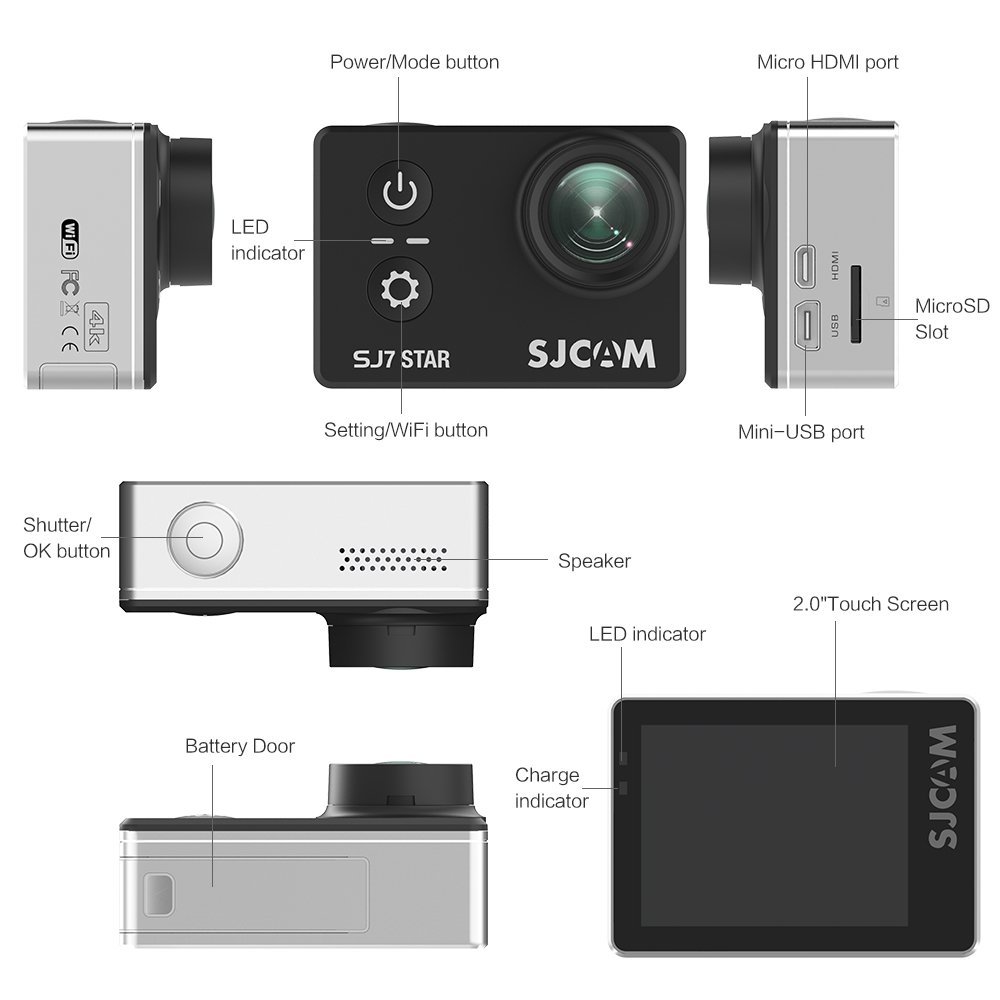 A Câmera Sjcam SJ7 Star apresenta um design elegante com corpo em metal, apresenta Sony com IMX117 do sensor, ou seja, estamos falando de um sensor de qualidade sem qualquer dúvida. A tela sensível ao toque pode ser muito útil, pois podemos navegar pelo menu e alterar as opções a partir dele. A tela também pode ser usada para reproduzir seus vídeos ou fotos. Você pode conectar a câmera ao telefone usando o aplicativo SJCam Zona (iOS / Android). Suporta cartões microSD de até 128GB(Selecionado).