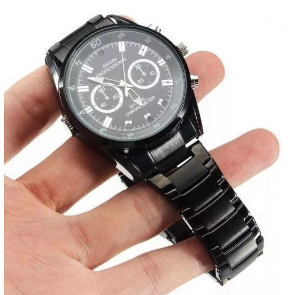 Esta câmera se parece com um relógio masculino, então ninguém vai notar. Além disso, nenhuma luz indicadora está ligada ao trabalhar. Com a lente da câmera embutida, você pode usá-la para gravar o que está acontecendo. Qualidade suficiente para você ver o que estava acontecendo.